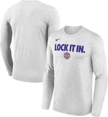 Dribble past the competition in this LSU Tigers On-Court Bench Long Sleeve T-Shirt from Nike. Matching what the players on the bench will wear during the 2026 NCAA Basketball season, this tee features a "Lock It In" wordmark across the chest with the LSU Tigers logo underneath. With Dri-FIT technology to wick away sweat and a lightweight, breathable build, you'll be able to hit the gym or enjoy even the most intense matches while staying cool and comfortable.