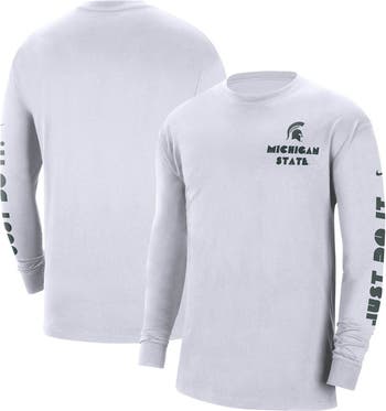 The Men's Nike White Michigan State Spartans Heritage Max 90 Long Sleeve T-Shirt is the perfect way to show your unwavering support for the Michigan State Spartans. With its bold screen print graphics, this shirt will let everyone know that you're a true fan. Made from soft and comfortable cotton, this shirt is perfect for game day or any day you want to show your Spartans pride.