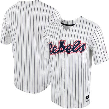 As a die-hard Ole Miss Rebels fan, it's important to look the part. This awesome Pinstripe Replica Full-Button Baseball Jersey from Nike lets you do just that. Its sleek style, moisture-wicking Dri-FIT technology and bold Ole Miss Rebels graphics make this jersey the perfect addition to your game day outfit.