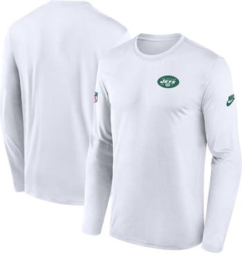 Boost the comfort level of your New York Jets apparel with this Legend Small Logo Performance Long Sleeve T-Shirt by Nike. Its sweat-wicking Dri-FIT technology keeps you dry and comfortable all day. Crafted from lightweight jersey fabric, this New York Jets tee is ideal for cooler weather or as a layering piece.