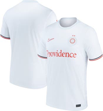 You'll be called down to the pitch at the next Portland Thorns FC match when you're seen wearing this Nike Away jersey. Integrated Dri-FIT technology wicks away moisture to promote a lightweight, breathable feel. Replicated after the team's official gear, this Portland Thorns FC jersey is complete with sleek graphics that make showing your club pride easy.
