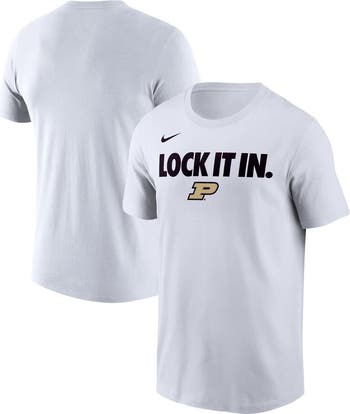 Dribble past the competition in this Purdue Boilermakers On-Court Bench T-Shirt from Nike. Matching what the players on the bench will wear during the 2026 NCAA Basketball season, this tee features a "Lock It In" wordmark across the chest with the Purdue Boilermakers logo underneath. With Dri-FIT technology to wick away sweat and a lightweight, breathable build, you'll be able to hit the gym or enjoy even the most intense matches while staying cool and comfortable.
