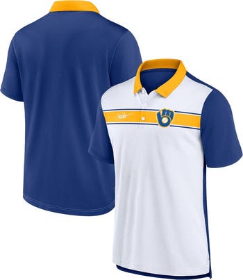 Step into the world of baseball with the Milwaukee Brewers Rewind Stripe Polo. Crafted from a blend of polyester and spandex, this stylish polo offers a comfortable midweight feel. Its three-button placket and droptail hem with side splits provide a classic and relaxed fit. The heat-sealed fabric applique proudly displays the iconic Milwaukee Brewers logo, connecting you to the heart of the team. Whether you're cheering from the stands or simply showing your support, this polo embodies the spirit of the Milwaukee Brewers, uniting fans in their shared passion for the game.