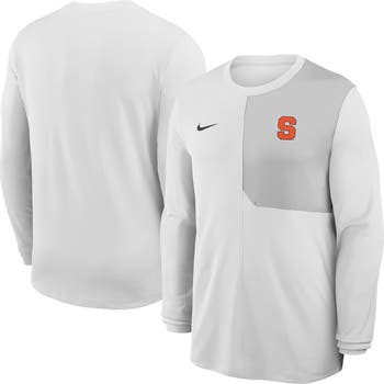 Enhance your comfort level in milder weather with this Syracuse Orange 2025 Sideline Coach UV Dri-FIT Long Sleeve Shirt by Nike. It features sweat-wicking Dri-FIT technology to keep you cool and dry, whether you're staying active or spending time out in the sun. Designed with mesh paneling for added breathability and a lightweight feel, this Syracuse Orange top is comfortable to wear all day.