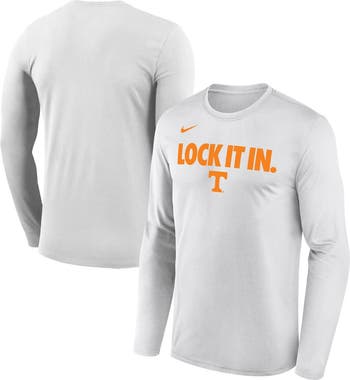 Dribble past the competition in this Tennessee Volunteers On-Court Bench Long Sleeve T-Shirt from Nike. Matching what the players on the bench will wear during the 2026 NCAA Basketball season, this tee features a "Lock It In" wordmark across the chest with the Tennessee Volunteers logo underneath. With Dri-FIT technology to wick away sweat and a lightweight, breathable build, you'll be able to hit the gym or enjoy even the most intense matches while staying cool and comfortable.
