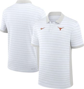 Look ready to join the Texas Longhorns on game day in this 2025 Sideline Victory Stripe Performance Polo by Nike. It's crafted from breathable pique fabric and features sweat-wicking Dri-FIT technology to keep you cool and dry. Whether you're cheering from the stands or showing team spirit at work, the classic fit of this Texas Longhorns polo provides a comfortable feel.