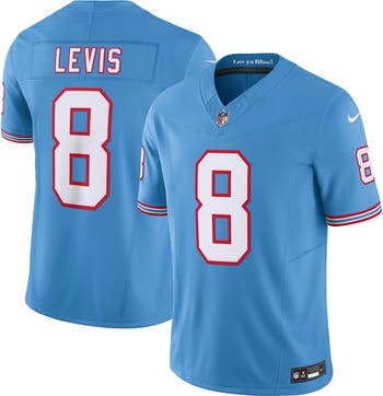 Walking into the stadium, you feel a rush of energy pass over you. You adjust your Will Levis Tennessee Titans Nike Alternate Oilers Throwback Limited jersey and know you're ready to get swept up in the electricity of the game. Made for authenticity-seeking fans, this state-of-the-art Vapor F.U.S.E. jersey draws inspiration from your team's on-field look with reimagined seamlines and a chainmaille mesh grill at the front neck. Its updated embellishments include sublimated twill name and numbers, which are heat-transferred onto the front and back panels to show support for your favorite player. Lightweight, breathable fabric with built-in Dri-FIT technology keeps you cool and comfortable as you celebrate every big play by Will Levis this season.