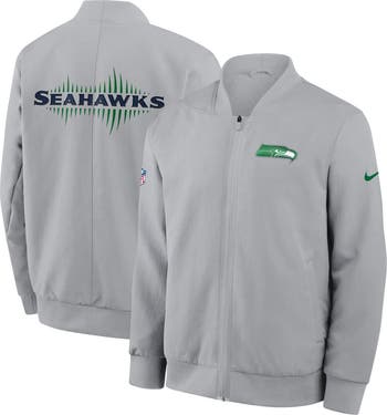 This Seattle Seahawks 2025 Rivalries Collection Sideline Full-Zip Bomber Jacket from Nike is inspired by the 137.6 decibels that destroy hopes, dreams and eardrums. The two-way stretch, water-resistant twill fabric is crafted for heavyweight coverage in cold, inclement weather, helping keep you warm while you send a message loud and clear to opponents.
