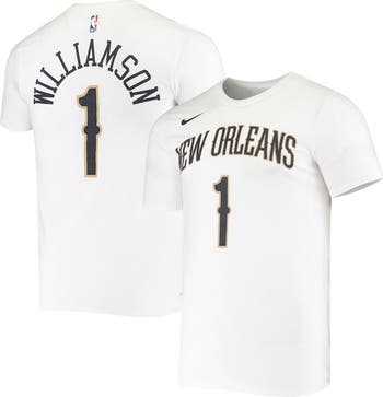 Make a statement about your New Orleans Pelicans fandom by wearing this Zion Williamson Name & Number T-shirt from Nike. It features bold graphics that let everyone know you cheer for Zion Williamson on game day. This New Orleans Pelicans tee also helps keep you comfortable through moisture-wicking Dri-FIT technology and Nike Dry fabrics designed to evaporate away sweat quickly.