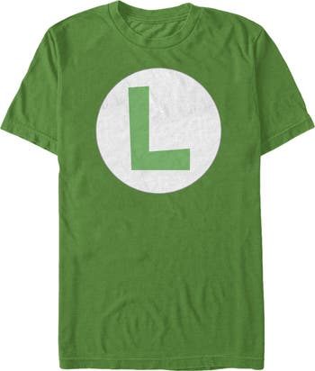 Before you go in to save the Mushroom Kingdom, make sure you're fully equipped with the Nintendo Luigi Circle Icon Men's Tee! A white circle with a big red "L" in the center is printed on the front of this awesome Luigi tee.