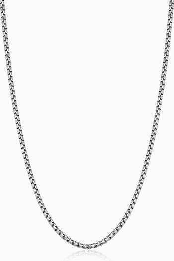 Crafted in Italy from high-quality sterling silver, the Off the Grid Chain redefines bold minimalism with its sleek round box link design. Its intricate construction offers a polished yet rugged appeal, perfect for everyday wear or layering with other pieces. Strong, durable, and effortlessly stylish, this chain is a versatile addition to any modern man’s collection, embodying understated confidence and timeless craftsmanship.