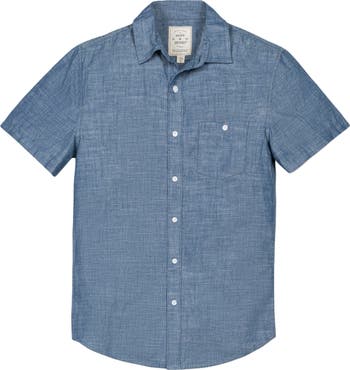 Our classic short sleeve button down shirt is cut from soft organic cotton chambray which goes with everything — from the beach to the board room. Features a functional chest pocket, center front button closure, and small canvas logo label at the inner placket. A staple you'll wear throughout every season.