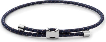 Polished sterling-silver accents tip the ends of this bungee-rope bracelet handcrafted from two-tone nylon cord that adjusts for a perfect fit with a simple pull.