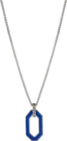 An enamel inlay brings a bright pop of color to the octagonal pendant strung on this sturdy sterling silver box-chain necklace.