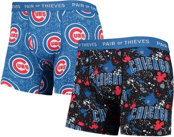 Rep the Chicago Cubs in every part of your outfit with this Super Fit two-pack boxer briefs set from Pair of Thieves. Lightweight mesh fabric and a no-roll elastic waistband offer the most comfortable experience you can have while supporting your favorite team. Chicago Cubs graphics sitting on top of the eye-catching sublimated pattern serve as a great base to layer on more game day gear.