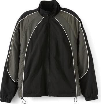 A cropped jacket with a zipper closure, raglan sleeves, and side pockets. Designed for easy layering, it’s a versatile piece for everyday casual wear.