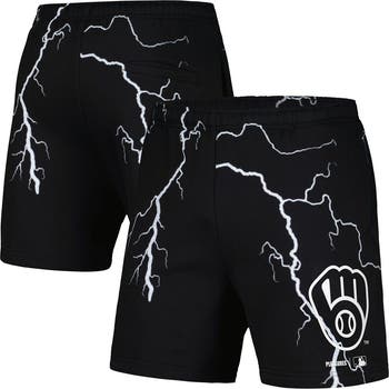 Add an electric piece of Milwaukee Brewers gear to your game day rotation by picking up these Lightning Shorts. An exclusive collaboration from PLEASURES x MLB, It features a team and MLB logo along with a striking design of lightning bolts across the front and back. The elastic waistband ensures the perfect fit, while its two side pockets keep your valuables safe while you enjoy your favorite game.