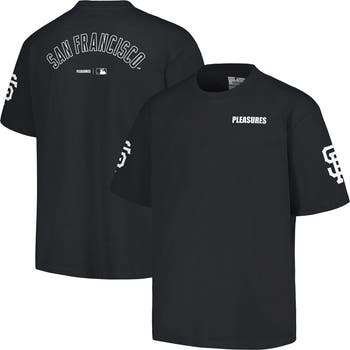 The Men's PLEASURES Black San Francisco Giants Team T-shirt is the perfect way to show your support for the San Francisco Giants. Made from soft cotton, this shirt features screen-printed graphics that proudly display the Giants logo. Whether you're cheering from the stands or just hanging out at home, this shirt will let everyone know you're a true Giants fan.