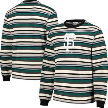 The Men's PLEASURES Cream/Green San Francisco Giants Ballpark Long Sleeve T-Shirt is the perfect way to show your support for the San Francisco Giants. Made from durable cotton, this long sleeve t-shirt features heat sealed graphics and a woven design that will make you stand out from the crowd. The heavier weight than a regular t-shirt and ribbed collar and sleeve cuffs provide added comfort and durability. Whether you're cheering on the Giants at the ballpark or just showing your team spirit, this t-shirt is a must-have for any fan.