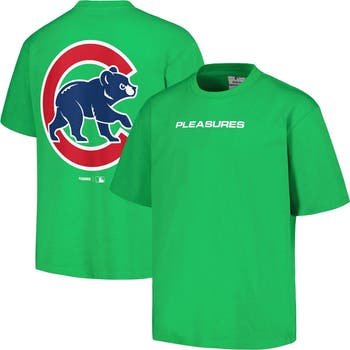 The PLEASURES Green Chicago Cubs Ballpark T-shirt is a must-have for true Chicago Cubs fans. Made from soft, breathable cotton, this shirt ensures all-game comfort. Bold Chicago Cubs graphics on the front proudly display your team support, while the classic fit flatters any figure. Whether cheering from the stands or watching from home, this shirt is the perfect way to showcase your Cubs pride.