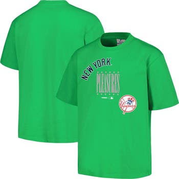The Men's PLEASURES Green New York Yankees Repurpose T-shirt is a must-have for any true Yankees fan. Made from soft cotton, this T-shirt features screen-printed graphics that proudly display your allegiance to the Bronx Bombers. Whether you're cheering them on at the stadium or just showing your support around town, this T-shirt is the perfect way to represent your favorite New York Yankees.
