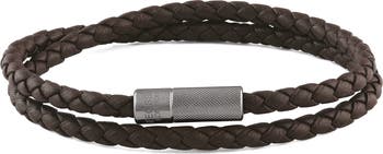 A braided rope of well-graind leather brings a relaxed, wear-anywhere feel to a bracelet that cinches smartly with Tateossian's distinctive logo-stamped pop clasp.