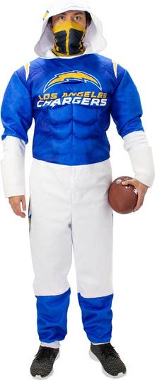 Transform into a Los Angeles Chargers player with this Game Day costume in team colors. The bodysuit features padded faux muscles, official Los Angeles Chargers graphics and a zipper closure for easy dressing. Plus, polyester material creates a soft feel for hours of comfortable wearing.