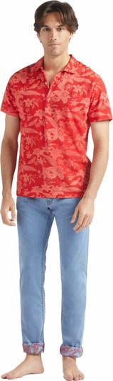 Offering a stylish take on the classic polo, this shirt is adorned with an all-over tropical print and features a two-button closure and a tonal turtle embroidered on the chest.