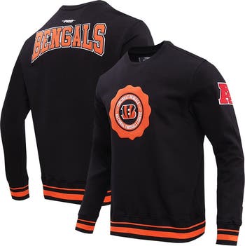 The Pro Standard Black Cincinnati Bengals Crest Emblem Pullover Sweatshirt is a must-have for devoted Cincinnati Bengals fans. This midweight sweatshirt, perfect for moderate temperatures, features a heat-sealed embroidered fabric applique proudly displaying the Bengals' iconic crest emblem. Its crew neck design ensures a comfortable fit, making it ideal for game days or showing Bengals pride.