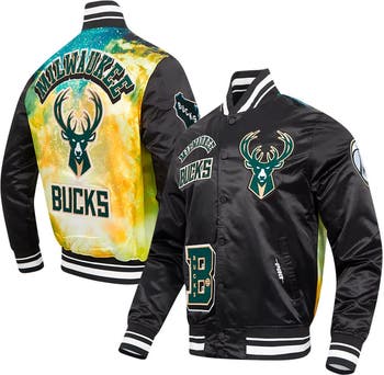 Show off your Milwaukee Bucks pride with this Pro Standard Sublimated Satin Full-Snap Jacket. This Milwaukee Bucks jacket features a unique sublimated design with a satin finish, adding a touch of luxury to your game-day attire. The heat-sealed fabric appliques with chenille and raised embroidered detail provide a premium look, showcasing your Bucks pride in style.