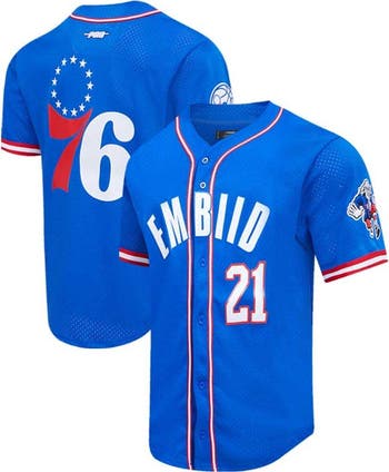 Rep Joel Embiid anywhere with this Philadelphia 76ers Capsule Player shirt. This button-up from Pro Standard is modeled after a baseball uniform and is decked out in Philadelphia 76ers graphics. Cheer Joel Embiid to a win when he hits the court with this eye-catching shirt.