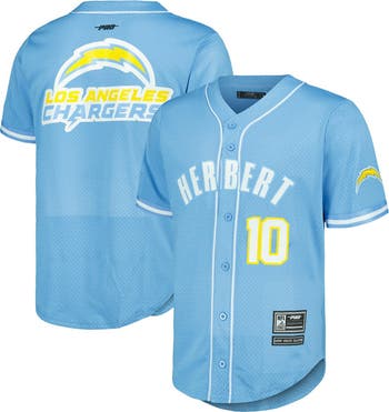 Men's Pro Standard Justin Herbert Powder Blue Los Angeles Chargers Mesh Baseball Button-Up T-Shirt