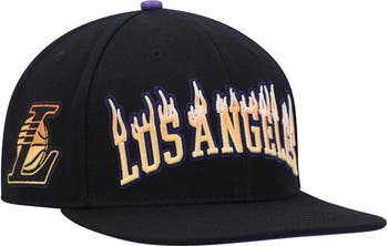 Men's Pro Standard Los Angeles Lakers Black Flames Snapback Hat