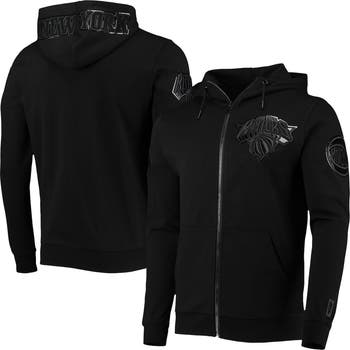 Add some trendy confidence to your New York Knicks game day gear with this Triple Black Gloss hoodie from Pro Standard. While the cozy fabric and midweight design keep you warm, the full-coverage hood and front pouch pocket bring convenience to your day. Featuring edgy New York Knicks appliques in the same color as the top itself, this pullover is a must-have to show off your unique yet wearable style.