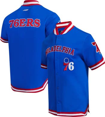 Get ready for on-court action with this Philadelphia 76ers Warm-Up full-snap jacket. Crafted by Pro Standard, it features bold embroidered team graphics across the front and striped details on the cuff, collar and hem. Match the top Philadelphia 76ers players with this sleek top.