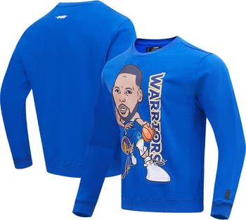 The Men's Pro Standard Stephen Curry Royal Golden State Warriors Avatar Pullover Sweatshirt is the perfect way to show your support for the Golden State Warriors. With screen-printed graphics and a heat-sealed embroidered applique, this midweight sweatshirt is ideal for moderate temperatures. Made from cotton, this sweatshirt offers both comfort and durability, making it a great choice for any Warriors fan.