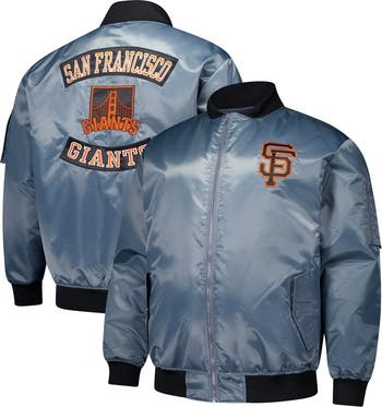 Show your San Francisco Giants pride with this Profile Full-Zip Bomber Jacket. This midweight bomber jacket is perfect for moderate temperatures, keeping you comfortable whether you're at the game or out on the town. The rib-knit collar, hem, and sleeve cuffs provide a snug and comfortable fit, while the embroidered twill team logo on the left chest and large embroidered twill applique on the back make a bold statement about your San Francisco Giants fandom.
