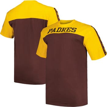 Represent your beloved San Diego Padres in style with the Profile Gold/Brown San Diego Padres Big & Tall Yoke Knit T-Shirt. This comfortable cotton tee features bold screen print graphics that proudly display your Padres pride. The crew neck and sewn-on arm stripe with sublimated graphics add a touch of sporty flair, making it the perfect choice for game day or any day you want to show your support for the San Diego Padres.