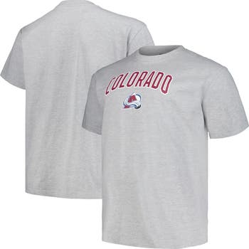 The Men's Profile Heather Gray Colorado Avalanche Big & Tall Arch Over Logo T-Shirt is the perfect way to show your support for the Colorado Avalanche. Made from a comfortable cotton and polyester blend, this shirt features a bold screen print graphic of the Avalanche logo, making it a must-have for any fan. Whether you're cheering on the team at the game or just showing your support around town, this shirt is sure to turn heads.
