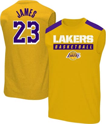 Gear up to cheer on LeBron James with this Los Angeles Lakers Player Muscle Tank from Profile. This muscle tank features the team name and "Basketball" proudly displayed over the Los Angeles Lakers logo across the chest. On the back, LeBron James's name and number make it clear you're celebrating the arrival of a new era for your squad.