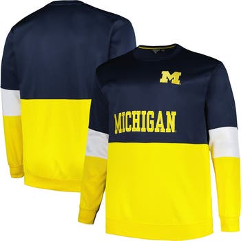 The Men's Profile Navy Michigan Wolverines Big & Tall Fleece Pullover Sweatshirt is the perfect way to show your support for the Michigan Wolverines. Made from lightweight polyester, this sweatshirt is ideal for mild temperatures and features embroidered fabric applique and contrast-color insets that proudly display your team spirit. The microfleece lining provides added warmth and comfort, making it a great choice for game days or any day you want to show your Michigan Wolverines pride.