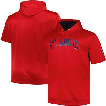 The Men's Profile Red St. Louis Cardinals Big & Tall Contrast Short Sleeve Pullover Hoodie is the perfect way to show your support for the St. Louis Cardinals. Made from lightweight polyester, this hoodie is ideal for moderate temperatures and features a front pouch pocket for added convenience. Screen print graphics and an embroidered team logo on the left sleeve proudly display your Cardinals pride. Whether you're cheering from the stands or relaxing at home, this hoodie is sure to keep you comfortable and stylish.