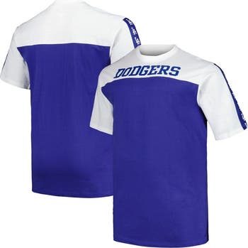 The Men's Profile White/Royal Los Angeles Dodgers Big & Tall Yoke Knit T-Shirt is the perfect way to show your support for the Los Angeles Dodgers. This shirt features screen-printed graphics of the Dodgers logo and team name, as well as a sewn-on arm stripe with sublimated graphics. The crew neck and cotton material make this shirt comfortable to wear all day long. Whether you're cheering on the Dodgers at the stadium or just relaxing at home, this shirt is sure to show your team spirit.