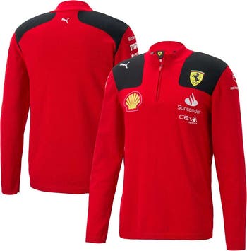 Gear up for cooler race days with this Scuderia Ferrari Team Knit half-zip jacket from Puma. It features an embroidered team logo and sponsors. Rev up the warmth with this sleek Scuderia Ferrari half-zip.