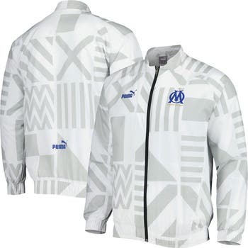 Train like your favorite Olympique Marseille players while wearing this Pre-Match Training jacket from Puma. It is a full-zip, lightweight top that features raglan sleeves for increased mobility and comfortability. The heat-sealed graphics on top of the sublimated design make this the perfect option to show your support for the Olympique Marseille.