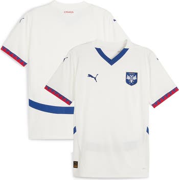 Proudly support your country on match day with this Serbia National Team 2024 Away Replica Jersey from Puma. It features authentic details straight from the pitch that are sure to identify you as a loyal fan. This jersey is also equipped with DryCELL technology to help keep you dry and comfortable for the whole match.