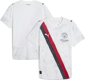 Celebrate Manchester City and their 2025 FIFA Club World Cup Authentic Jersey upcoming participation in the 2025 FIFA Club World Cup by grabbing this Puma x KidSuper Cream SE Palmeiras 2025 FIFA Club World Cup Authentic Jersey. It features a heat-sealed Manchester City team crest and Puma logo on the chest and sleeve, along with a heat-sealed KidSuper logo at the back of the neck. This regular fit jersey is made with ULTRAWEAVE fabric, which is a lightweight material constructed with a specially designed mechanical stretch to reduce friction, and at least 95% recycled material as part of the Puma RE:FIBRE program.