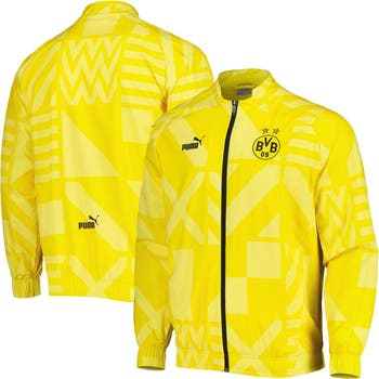 Train like your favorite Borussia Dortmund players while wearing this Pre-Match Training jacket from Puma. It is a full-zip, lightweight top that features raglan sleeves for increased mobility and comfortability. The heat-sealed graphics on top of the sublimated design make this the perfect option to show your support for the Borussia Dortmund.
