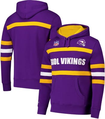 Channel your inner coach and showcase your Minnesota Vikings pride with this Vintage Logo Head Coach Fleece Pullover Hoodie. This midweight hoodie boasts a fleece lining for an extra layer of warmth, making it ideal for moderate temperatures. The embroidered helmet logo at the front left shoulder and sewn-on applique team wordmark make it clear you're a true Vikings fan.