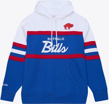 Stay warm while representing the Buffalo Bills in this Mitchell & Ness Head Coach Hoodie. Featuring sewn-on stripes across the chest and elbows, this midweight hoodie is perfect for moderate temperatures. With embroidered graphics and tackle twill details, this hoodie is a premium way to showcase your team pride, while the adjustable drawstring hood and front pouch pocket add extra coverage and convenient storage.